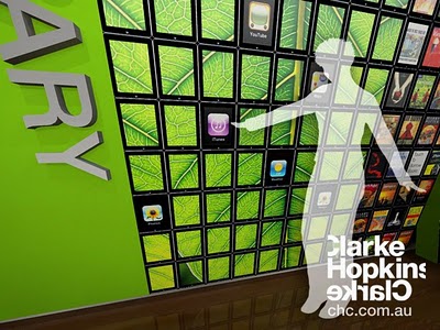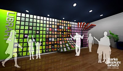 Australian architects ClarkeHopkinsClarke have generated a fun concept rendering for an “interactive library wall” made out of iPads. The concept as literally expressed is impractical, but the idea is clearly supporting a trend for future architectural systems: A unitized, tiled, interactive media wall, that is at once controlled as a homogenous unit or as individual zones of interactivity. Reminds me of my MArch thesis, way back from 2000.