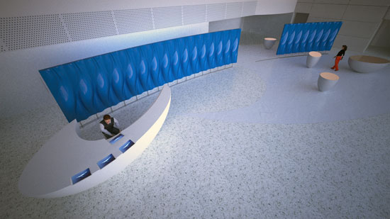 Designboom has posted yet another rockin’ lighting installation, this time at HP’s Palo Alto office lobby. Designed by installation artists Tronic, a series of vertical video panels include sculptural back panels, and each panel automatically rotates to add a kinetic dimension to the design.