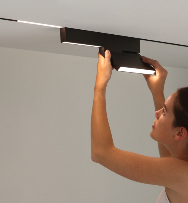 The track heads are very elegant, but what really caught my attention was the recessed, flush mounted version. They made the unit compact enough to fit within the track extrusion. Nice effect.