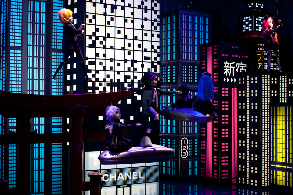 Department stores’ holiday windows are often amazing little worlds in and of themselves, filled with color, sparkle, animation and humor. I was particularly caught by some of the windows at the French department store Printemps, designed by Karl Lagerfeld. via CoolHunting and Materialist.