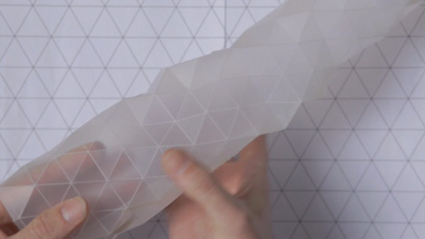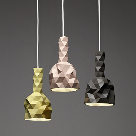 Nice triangulated pendants hand made via a simple mold (plastic sheet scribed, bent randomly and folded) and water-based quick cure resin by artist Phil Cuttance. See the full post from Core77.