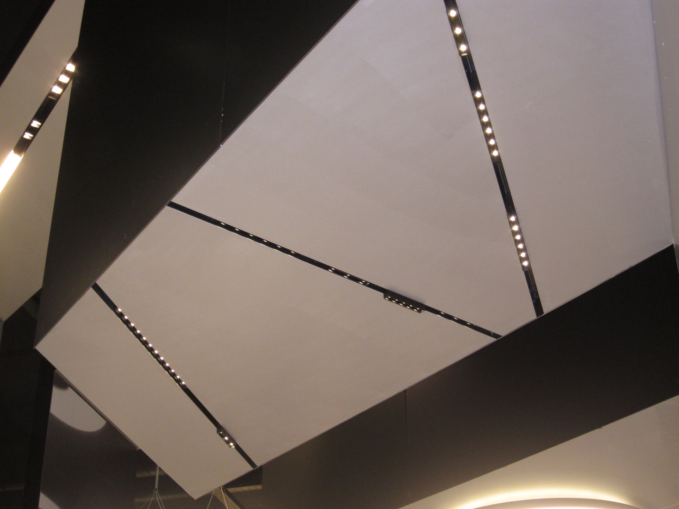 One product really caught my eye: XAL’s Move It system, a recessed track that has a magnetic attachment system included. Each module has its own power supply and attachment magnets, and the aluminum extrusion includes inset steel bars flanking the copper electrical bus so each module snaps into place and instantly turns on.