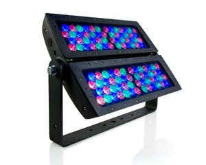 LEDs were too expensive at the time, but the one product that utilized this concept (at least at the most basic level) was the Color Reach: The Color Reach was split into two halves, each with its own set of control channels, so that different optics could be combined on one fixture. Combine a wide spread lens and a narrow lens, and the beam angle can be controlled or even animated — in this case, for floodlighting skyscrapers and other monumental projects.