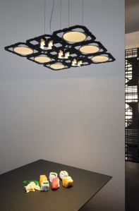 Ben Wirth Licht from Munich had a couple creative designs exploring alternate uses of circuit boards. I found these interesting mostly because they explore the dematerialization of traditional light fixtures. They dispense with the traditional enclosure of a fixture and leave behind just the module. So the question becomes: Can the module become an elegant fixture or architectural lighting system itself?