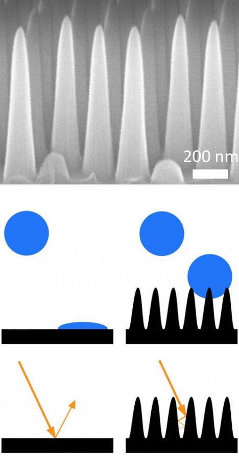 Luckily, those smart engineers at that tech school down the river from my alma matar might have fixed the glare’n’smudges problem once and for all, via nano-etched glass with ripples so tiny they bounce incident light into the walls of the ripples. Those tiny ripples also repeal water, grime, etc. Check out the post from Core77.com. Now that is “magical and revolutionary”!!!!