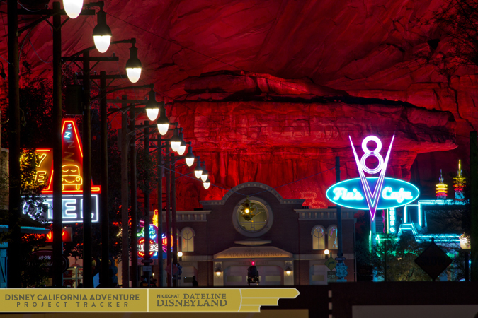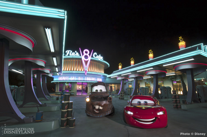 Next up, the new CarsLand, which is looking like a very successful attempt to bring the cartoon world of the Cars movie to real life. With lots of neon!