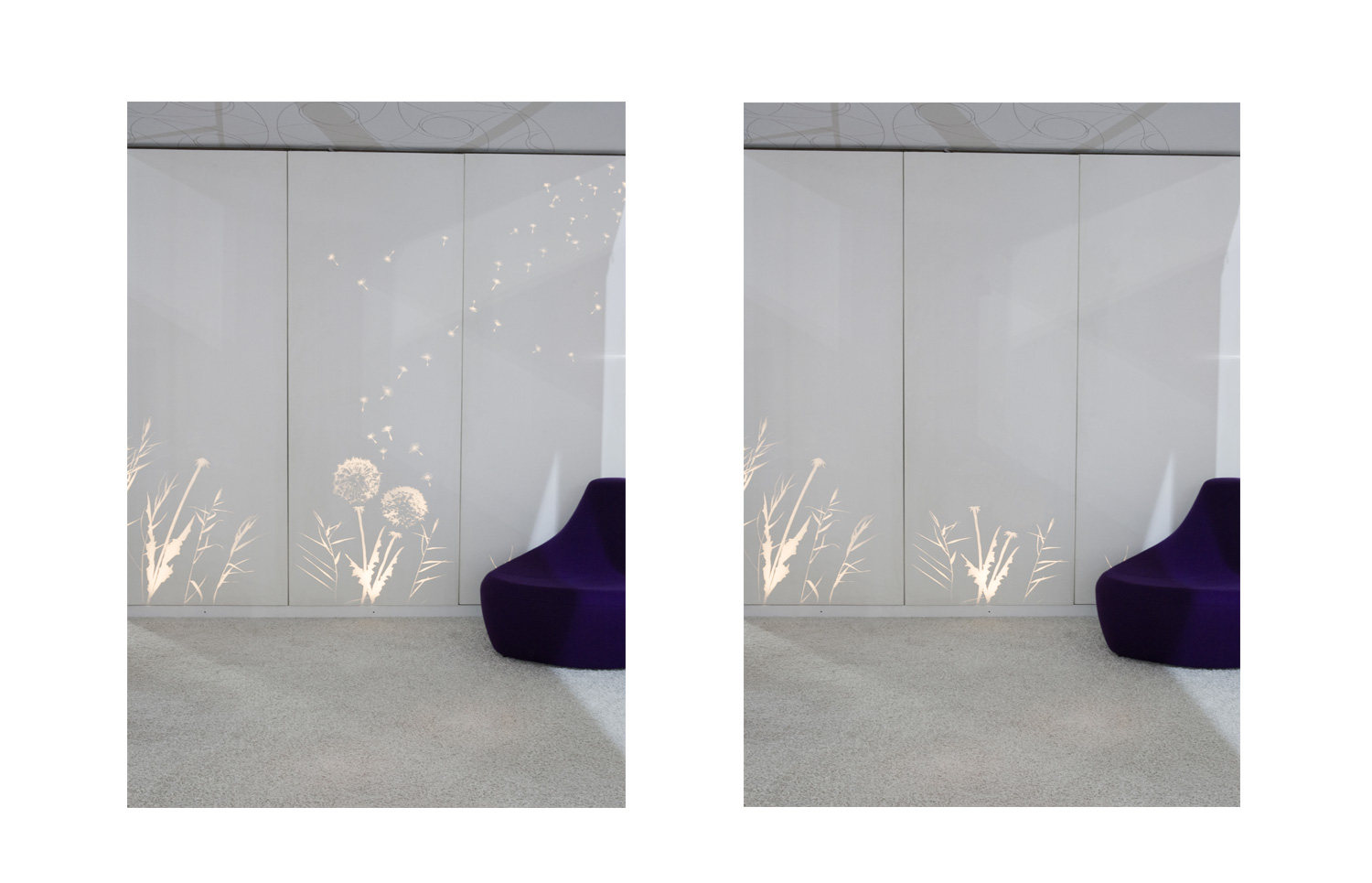 Ecco Luce is a personalized light wall. I created this new and unique way to intergrate led-lights in a wall. Switched off, it’s just a wall switched on, patterns of light shine through the wall to Wproject any form of light: static images, animated, dimmable or motion activated.