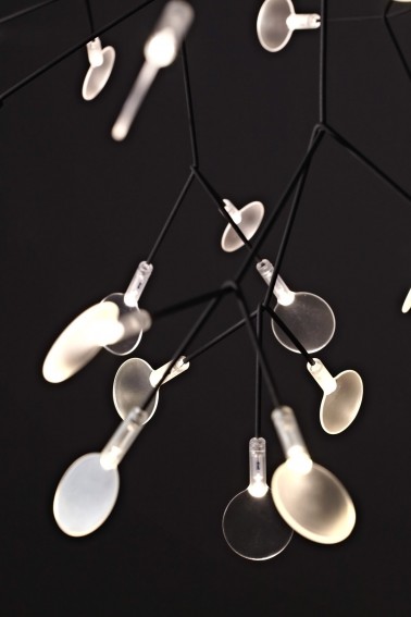 ‘Heracleum’ arrived at Moooi as a fantasy. I had the wish to light many LED-lights at the same time. I experimented with bundles of electricity wires that I shaped into a branch structure. During the development of the design it just seemed that too much soldering was required. Then Marcel Wanders had the ‘luminous’ idea to use his ELECTROSANDWICH® to make the design possible. The structure was coated with a plastic layer for isolation and on top of that a conductive layer to supply the LEDs with power. Using this technique it was possible to create a structure more slender than I had hoped for when I started the project. The technique and design are perfect for each other. ‘Heracleum’ is produced by Moooi.