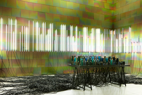 Fluorescent lights are controlled by analogue toggle switches in this interactive installation by Faye Toogood for design brand Established & Sons (+ slideshow).