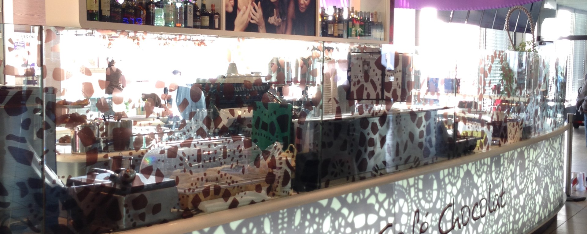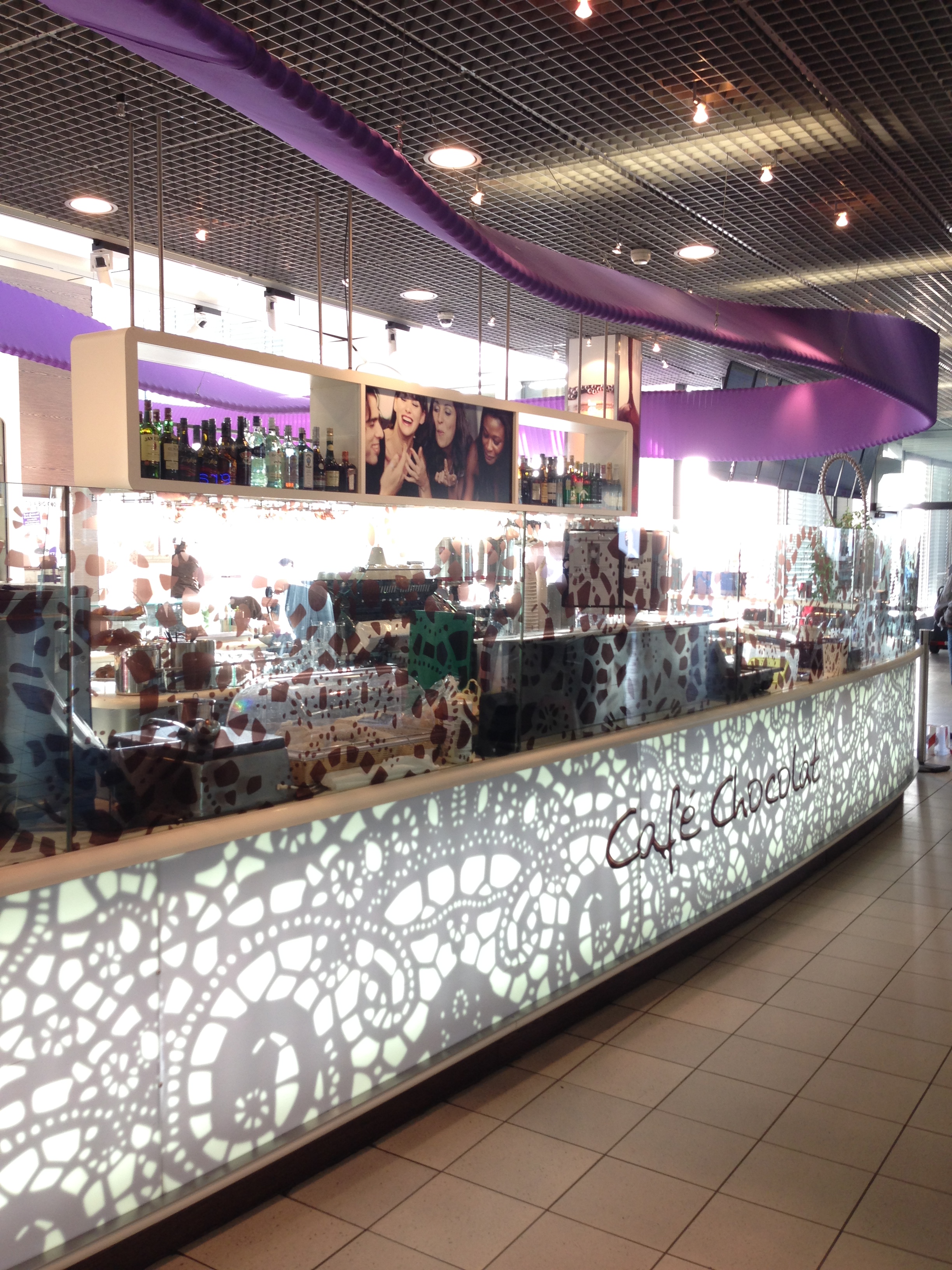 Lighting Inspiration cafe chocolate Nice back-lit shadow pattern at a cafe podium at Amsterdam’s Schipol Airport near the C gates. It is hard to tell in the photograph, but the pattern is actually a shadow from behind, not a printed graphic on the front. Share this: Click to share on X (Opens in new window) X Click to share on Facebook (Opens in new window) Facebook Click to share on LinkedIn (Opens in new window) LinkedIn Like Loading... Related