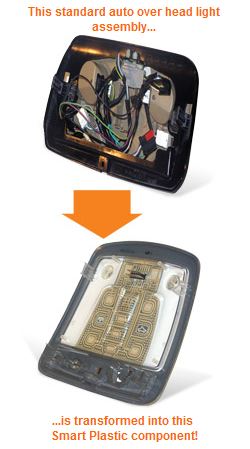 An interesting example is this automotive head light assembly — instead of a myriad of wires, connectors, weather seals, and mechanical fasteners, a series of conductive & nonconductive printed layers are combined, presumably with other technologies like capacitive sensing, to make a flat, simplified assembly.