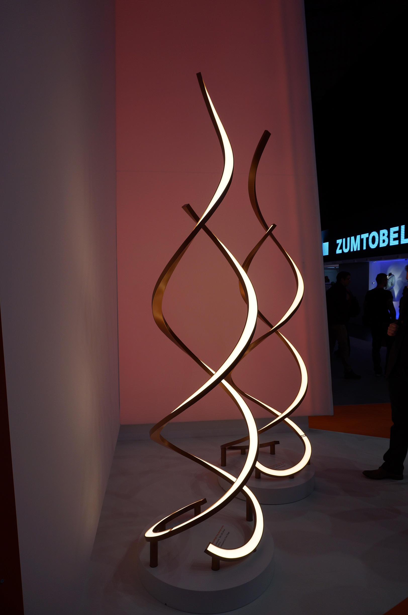 An interesting trend in lighting tech right now is the growing use of flexible circuit boards for lighting — commonly called “flex-tape”. Think of this as the high-quality evolution of ye-olde LED rope light. Lots of suppliers showed flex-tape components and fixtures designed around flex-tape at L+B — far too many to mention them all so I’ll highlight just a few: