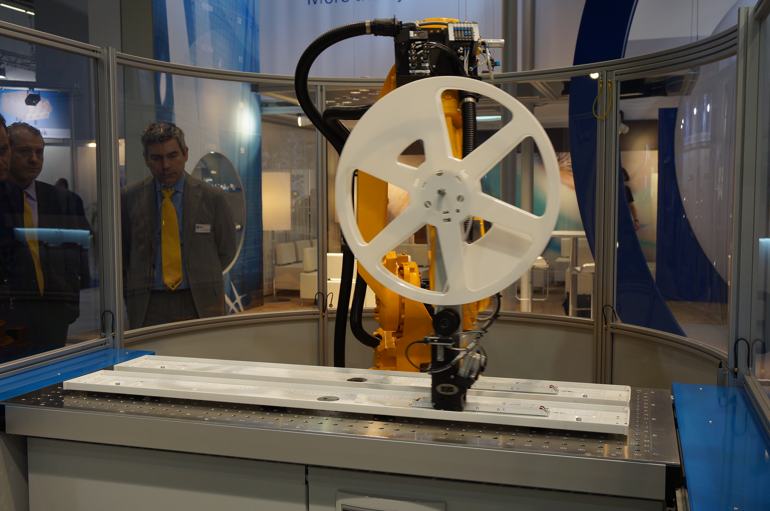 And BJB, a German maker of sockets and electrical interconnects, showed a concept of a robot automatically placing this flex tape into a fixture: