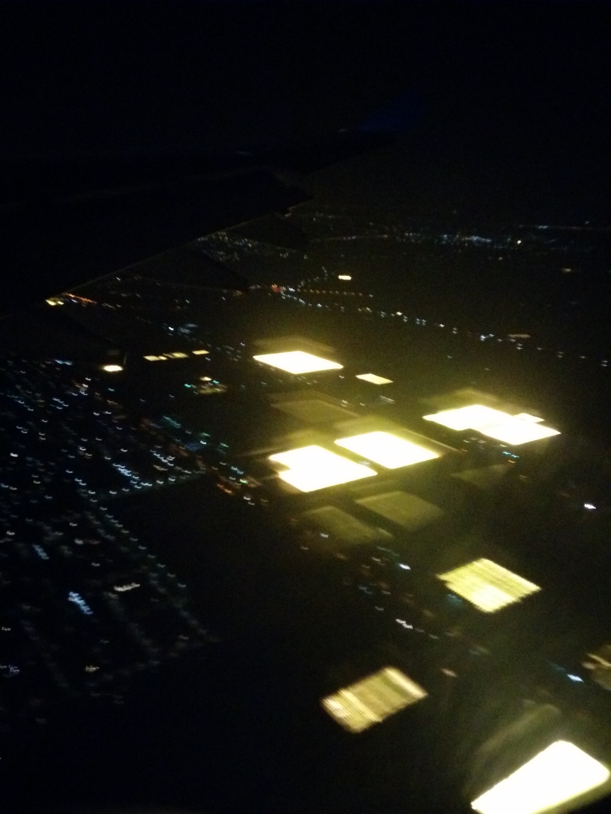Flying into Amsterdam’s Schiphol Airport on an overnight flight, I saw the most crazy sight — a world that looked like something from a sci-fi movie. The massive industrial greenhouses dotting the flat Dutch landscape looked like phosphor-coated LED chips rendered at a gargantuan scale. But what horrific light pollution. No wonder why seeing stars in Amsterdam is so rare — the extremely high humidity and these massive facilities pumping out billions of lumens into the sky. Hopefully the directional nature of LED lighting cuts down this problem in the future.