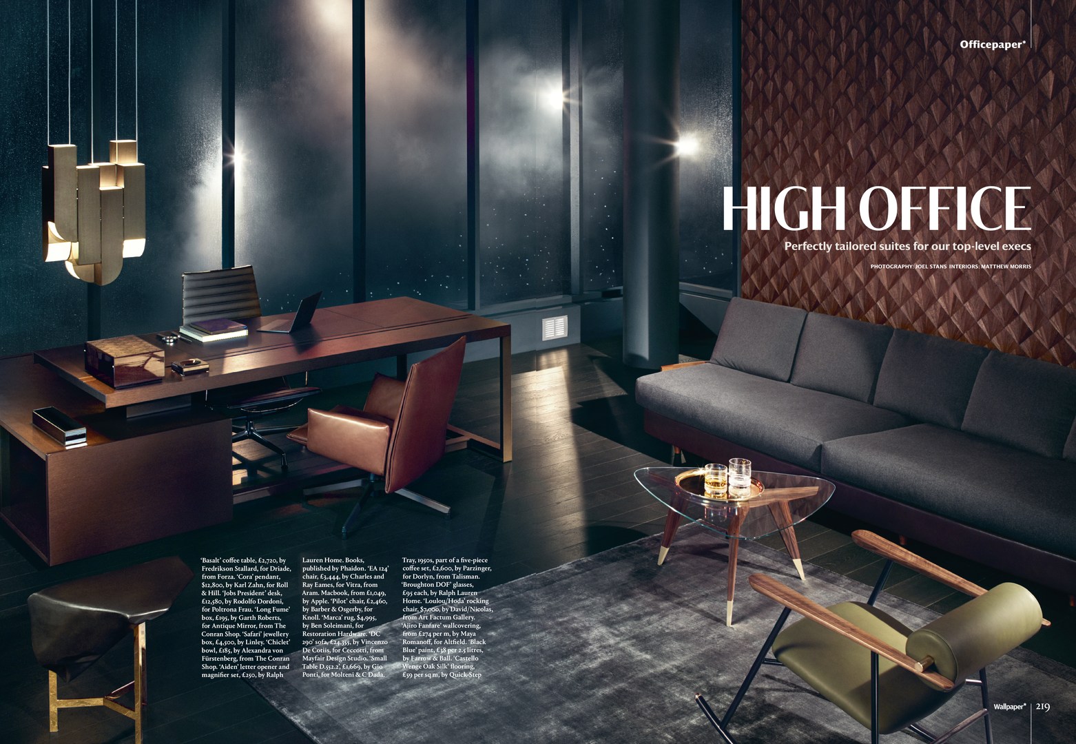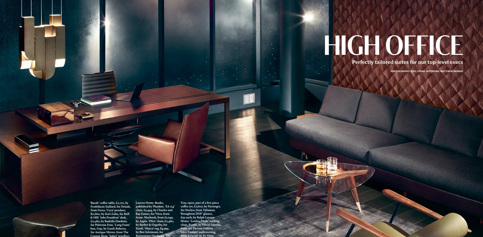 Joel Stans photographed perfectly dark and powerful office spaces for the 200th Anniversary Issue of Wallpaper* Magazine! With influences from space, each office space is decorated with both artistic aspects of the atmosphere as well as high-tech gear and super refined metallic pieces. These offices are something to envy! Interiors by Matthew Morris.
