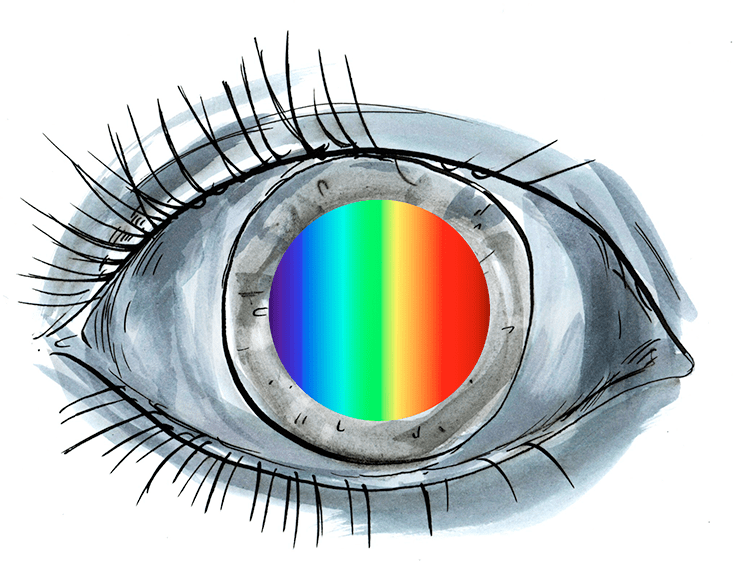 During the day, the eye gathers light information, in particular the amount of blue light that is present in the environment. Most of us know about the rods and cones that govern the visible side of things, but the cells discovered by Foster’s team are sensitive to a narrow range of blue light, around 480nm, and it’s these that are key to controlling our circadian rhythms with light.