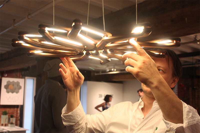 I like this chandelier concept called “Transforma” by Toronto designer Jacob Antoni – it reminds me of a Hoberman sphere. The chandelier is a beautiful integration of LED lighting into wood. Yet I also see lots of opportunity to use such a concept for complete architectural surfaces: Expandable/contractible or flexible systems have the potential to save tremendous coordination, supply chain and installation costs.