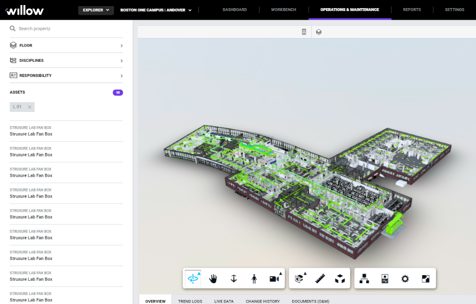 Willow’s primary offering takes a page from GE’s concept of “digital twins” for industrial equipment: The “Willow Twin” takes in all the operating data of a modern building and unifies it into one digital model: Construction data such as BIM models and subcontractor contracts; maintenance data such as manuals, service contracts, and tagged physical equipment; IoT data, such as sensor networks, BMS systems; and IoT connected