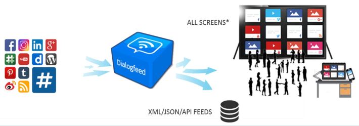 “Social walls” are an interesting new concept. Content aggregator services pull together data streams from various social media sites like Instagram or Twitter, based on desired hashtags, geo-fencing, or other qualifiers. These content streams can be displayed in a variety of formats, all the way up to large digital displays for concerts, retail, transit, etc.