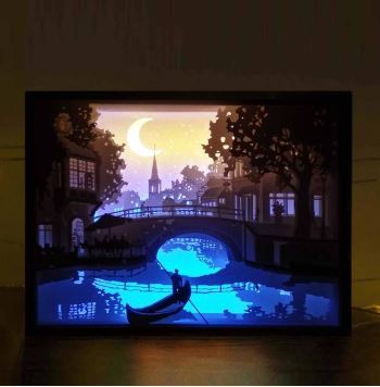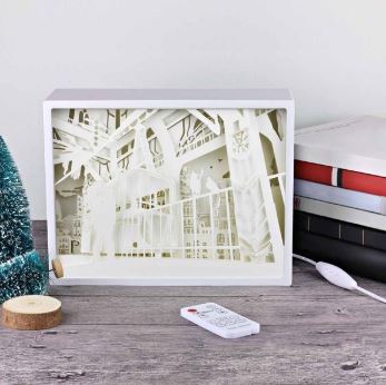 Vibes Genius is a small crafts company I ran across on Pinterest that makes beautiful little layered papercut light boxes. The effect of the layered depth and translucency of the paper with the scenography of the illustrations creates some striking compositions.