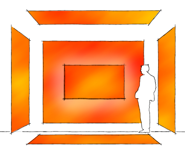 Humans have a 2° cone of vision that represents our active field of attention. The remaining 100° of our vision is peripheral, which provides broad overall understanding of our environment at incredibly fast speed. The sub-conscious nature and fast speed of peripheral vision is often ignored in architectural digital media installations. Via your peripheral vision, you can become immersed in an experience before even consciously recognizing it.