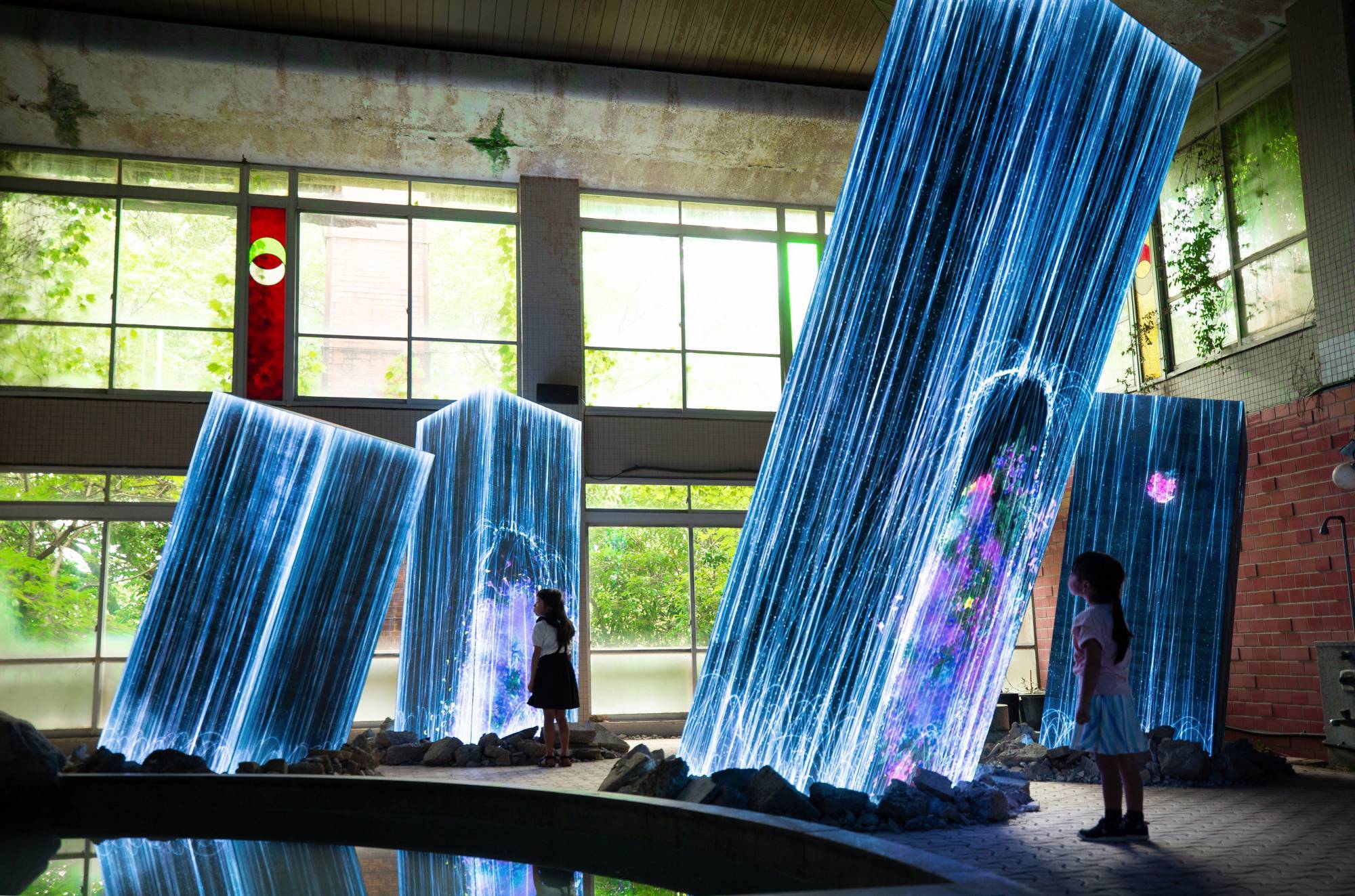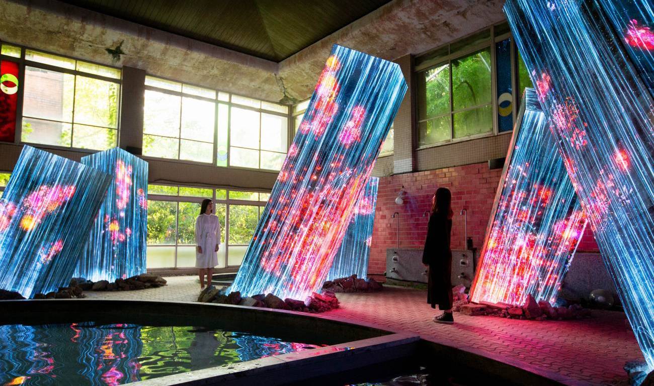 Yet another stunning project from TeamLab, this time a cluster of “megaliths” placed in an abandoned bathhouse.