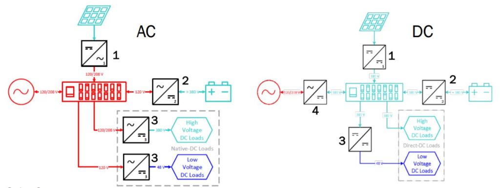 Plus, beyond the core energy savings, there are many secondary benefits of migrating to DC-infrastructure: Less equipment, lower cost through simpler architectures, and DC fundamentally marries to digital IoT tech easier than AC, making it easier to build more sophisticated controls and analysis software packages on top.