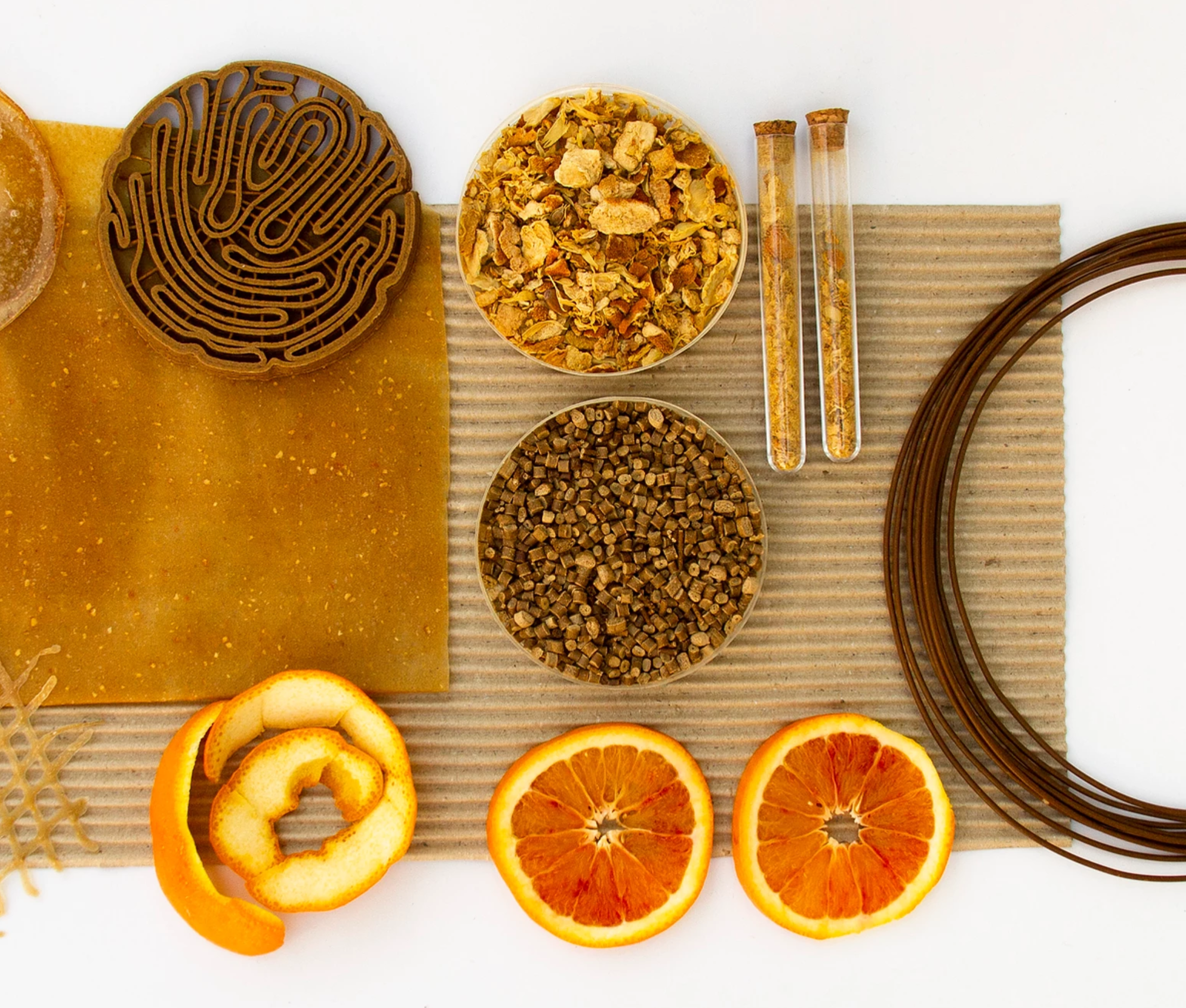But why orange peel? Domiziana Illengo, Krill’s marketing manager, says that aside from oranges being in abundance in Italy (Sicily produces around three per cent of the world’s oranges), there is a reason why the citrus peel is particularly useful. “The link between the base biopolymer made from the fermentation of vegetable starches and the added material from organic crops is they need sugars in order to bond,” she says. “Oranges are particularly rich in, not exactly sugar, but carbohydrates, which on a chemical level is basically the same thing. And so this helps us develop a sturdy material.”