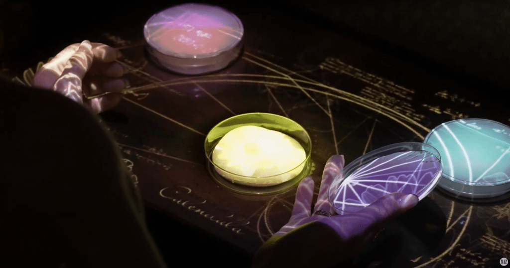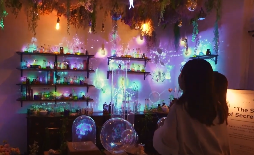 At first glance, I thought this was some sort of whimsical retail display, like the gift shop for the digital exhibition. On closer inspection it seems to be one of the art pieces – a sort of magic potion lab/enchanted apothecary/floral perfumery concept.