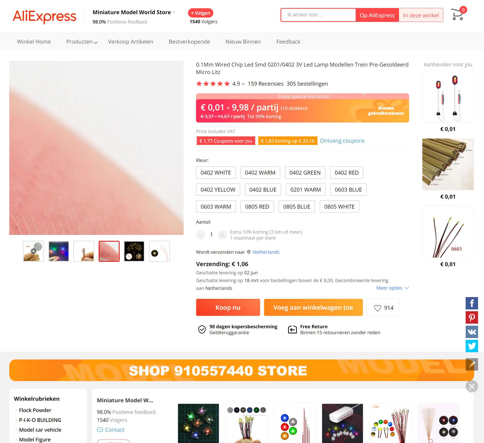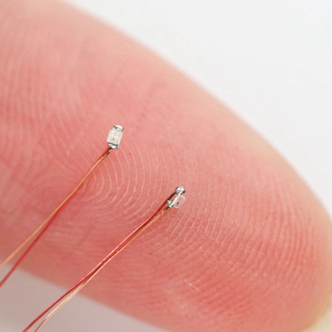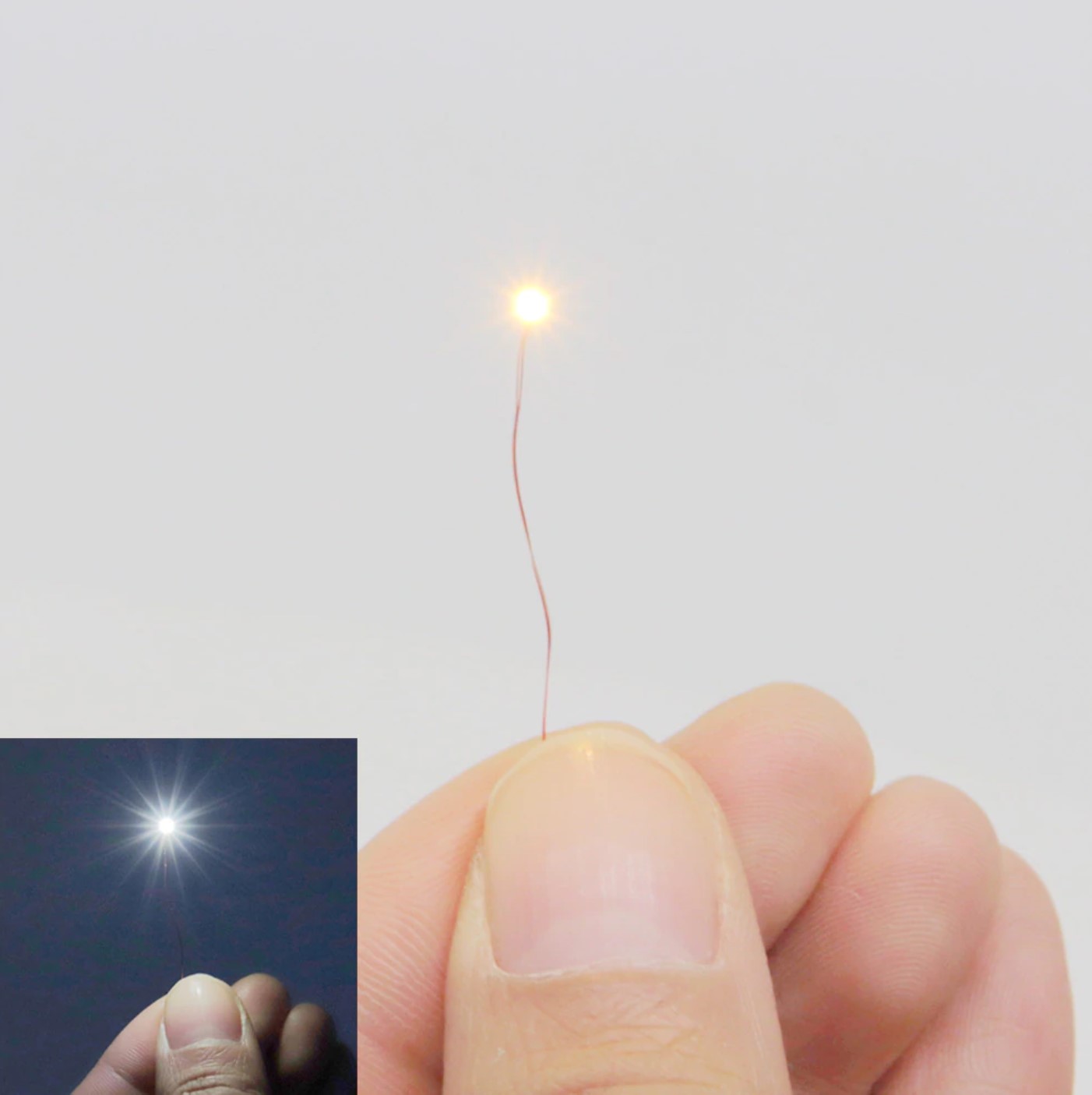 Case in point, I stumbled upon this model supplies site on Alibaba that is offering mini LEDs pre-attached to wire leads. The seller’s photography beautifully illustrates how small readily-available mini-LEDs are – and it almost becomes inconceivable how small micro LEDs will become for display applications.