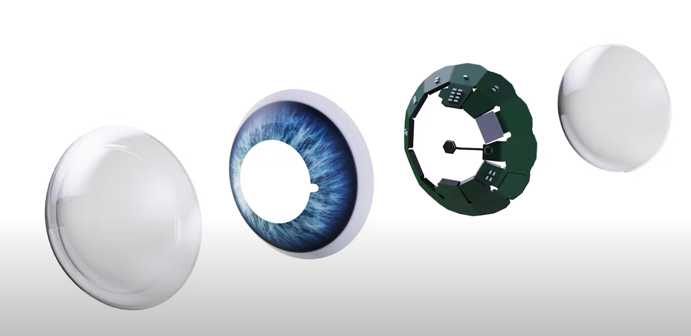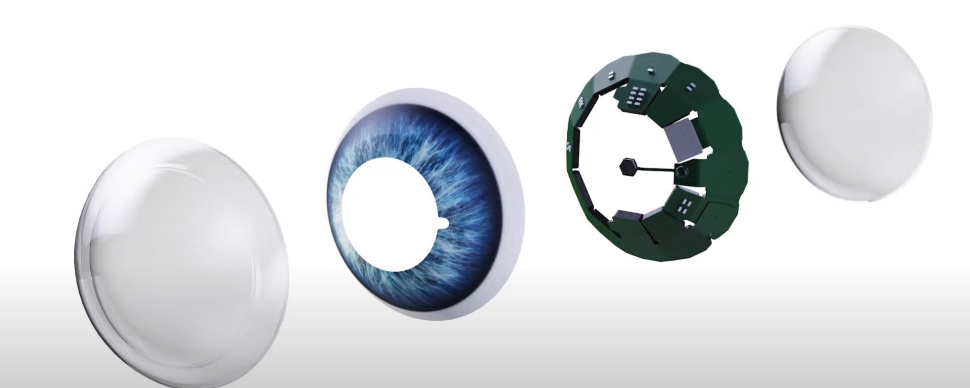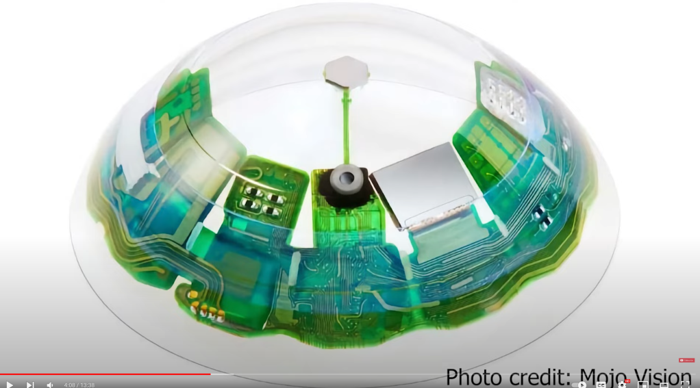 California-based startup Mojo is developing an “augmented reality” contact lens that integrates “the world’s smallest and densest micro-LED display”, along with battery, IMU, radio systems and other key elements on a PCB so tiny it folds into compound curves and sandwiches into the two lens of a typical medical-grade contact lens. The lens will communicate with a larger neck-band that houses the storage, video processing, etc.