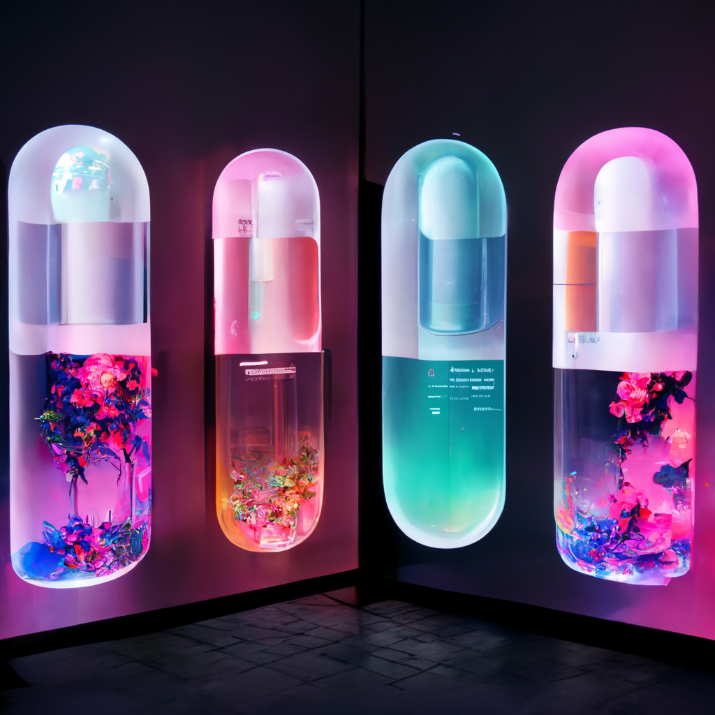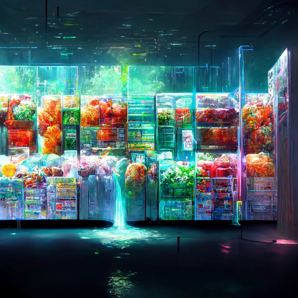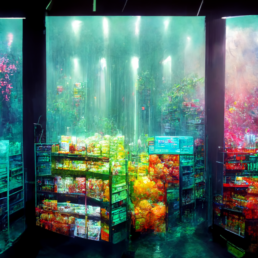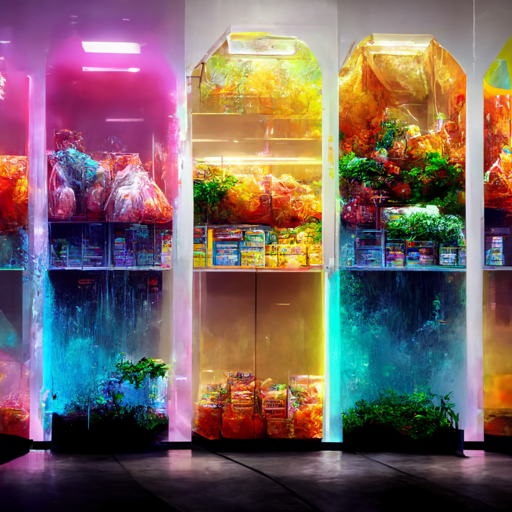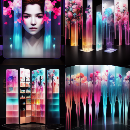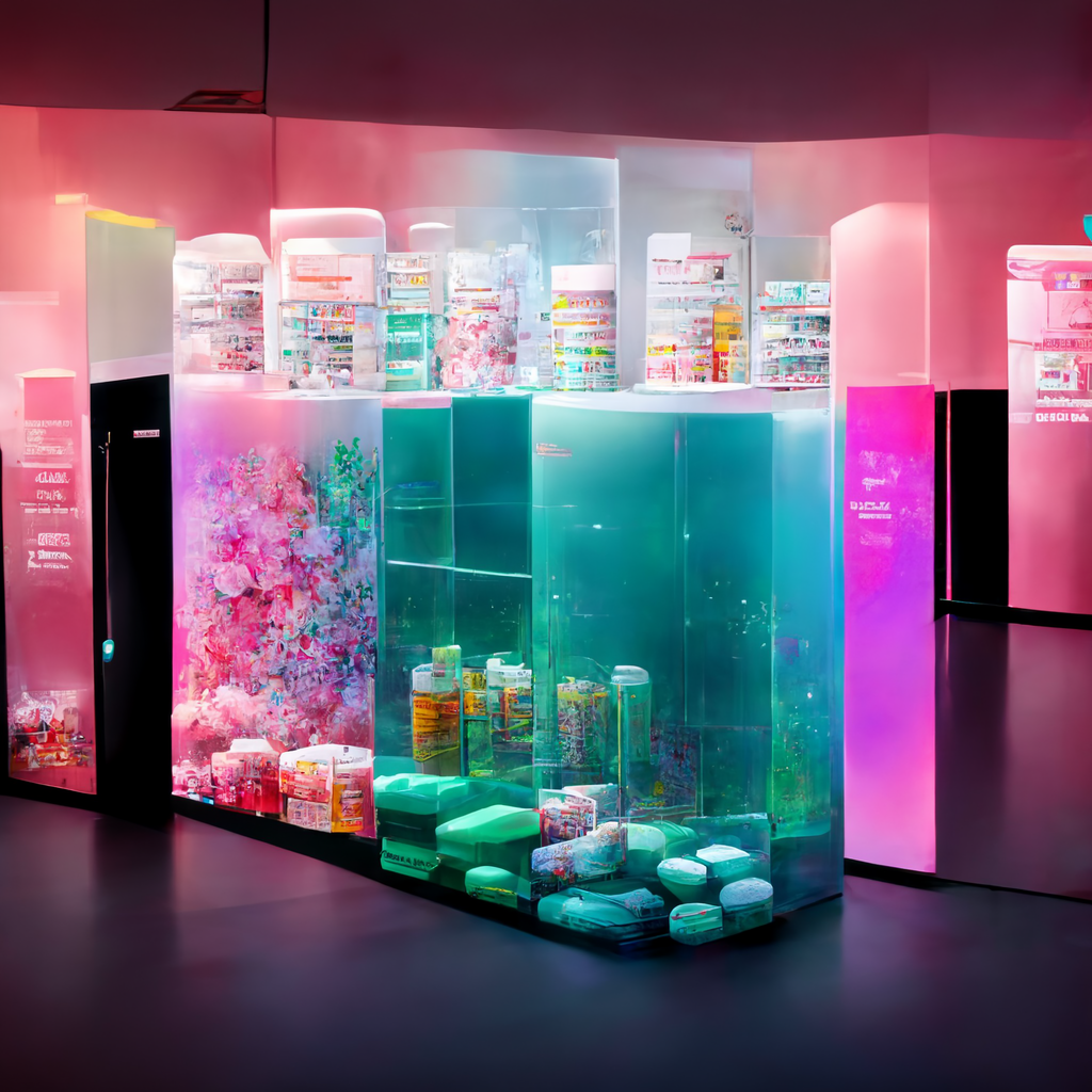 I’ve been messing around using Midjourney AI image generation to explore the fusion of immersive digital experiences in retail and hospitality applications. The random nature of Midjourney is so powerful in creating design “mood boards” — most of the trials are useless, but some of the generations are brilliant in their evocative power, much like a high-level Rorschach test.