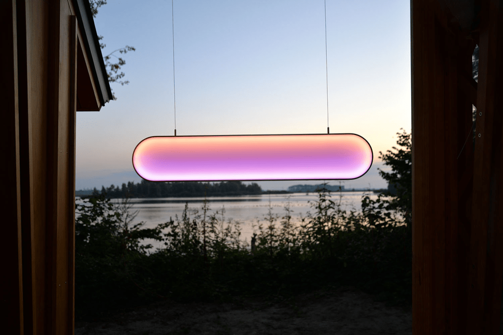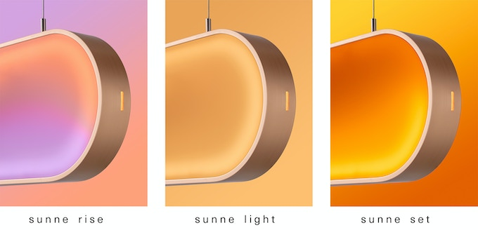 Beyond the self-contained solar generation and storage, I find especially thoughtful the multiple channels of LED strips inside of the fixture, creating gradients of pastels with the overall tonal range of sunrise/sunset/dusk/dawn.
