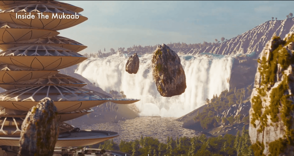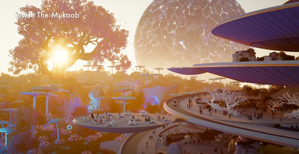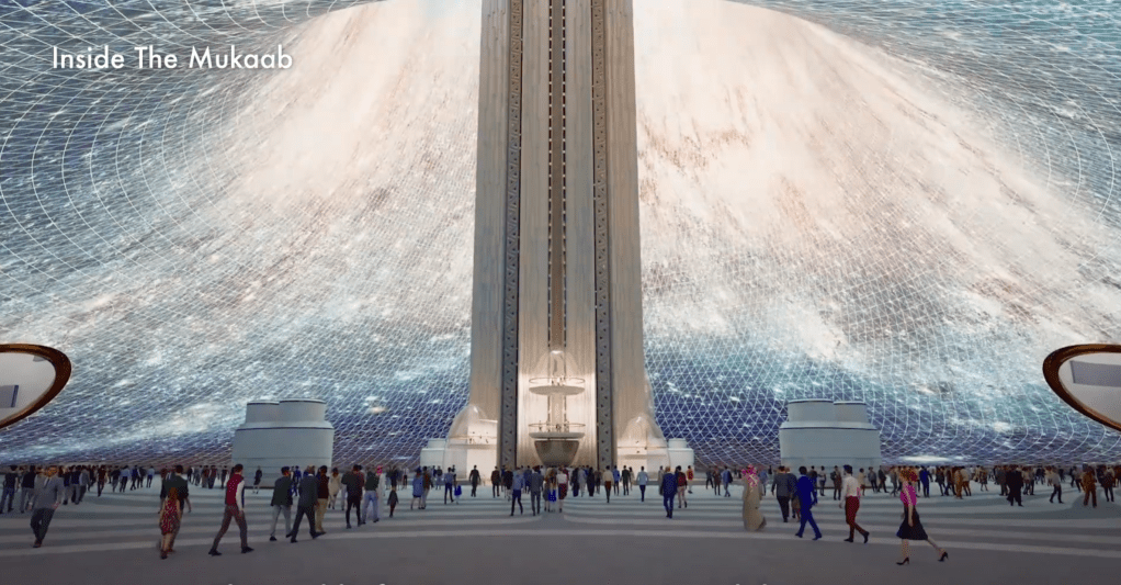 Within this gigantic 400-meter cube will be a massive LED dome creating an unprecedented and almost hard-to-believe virtual reality environment, surrounding a sculptural piece in the center of the dome that itself is a massive skyscraper-size building. You just have to watch the video to understand the scale and scope of the concept.