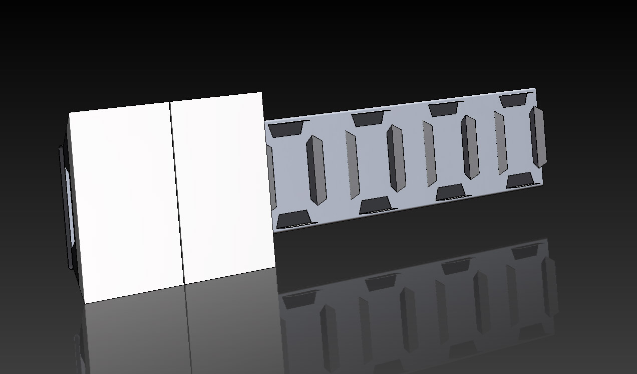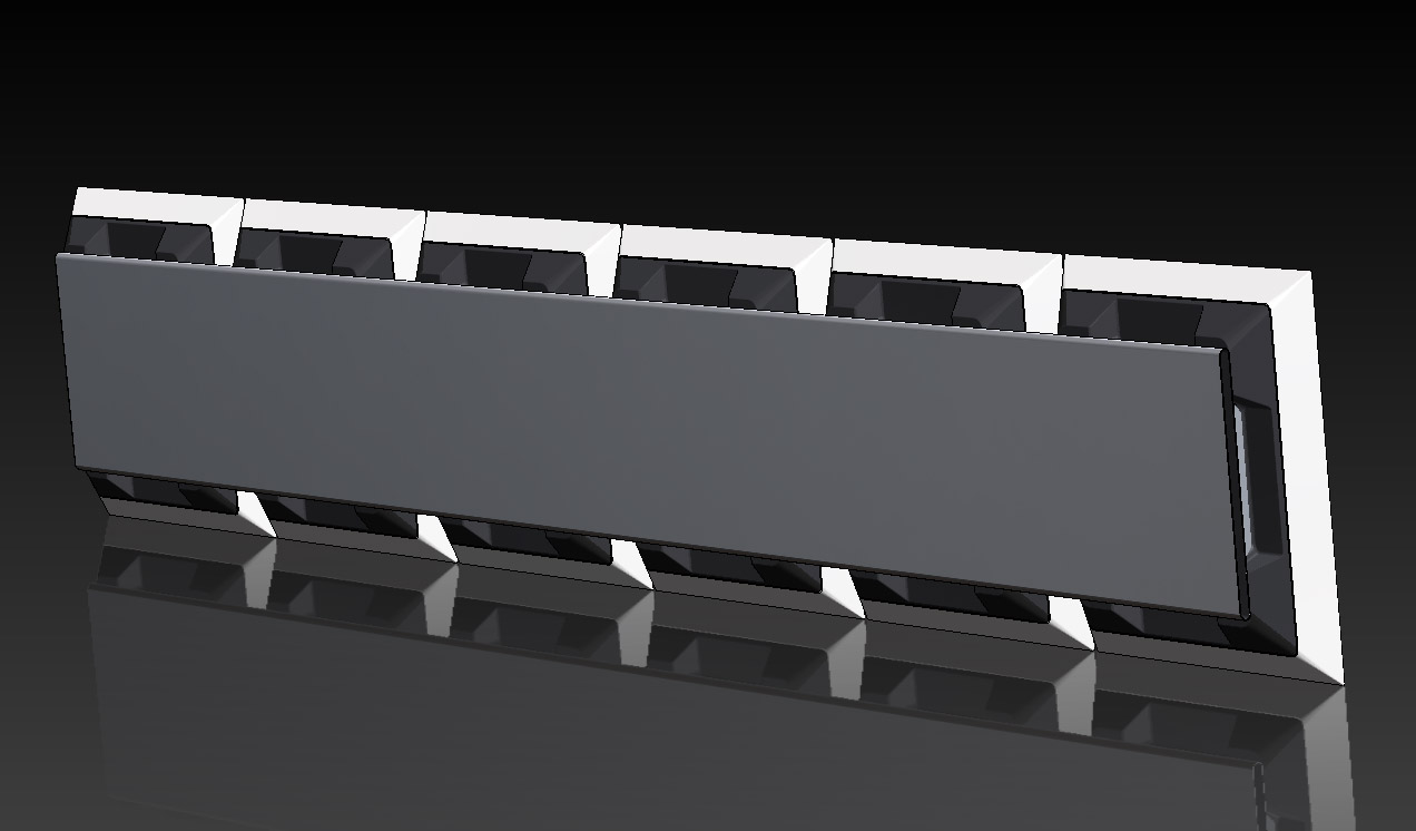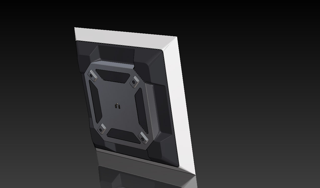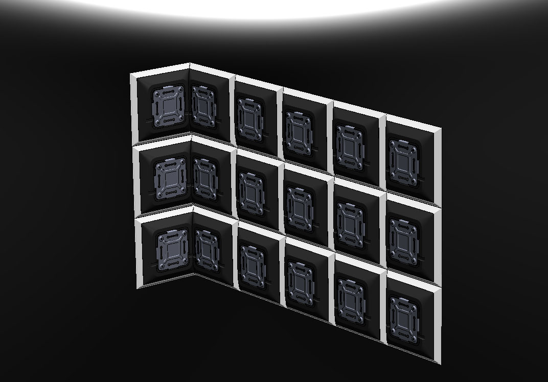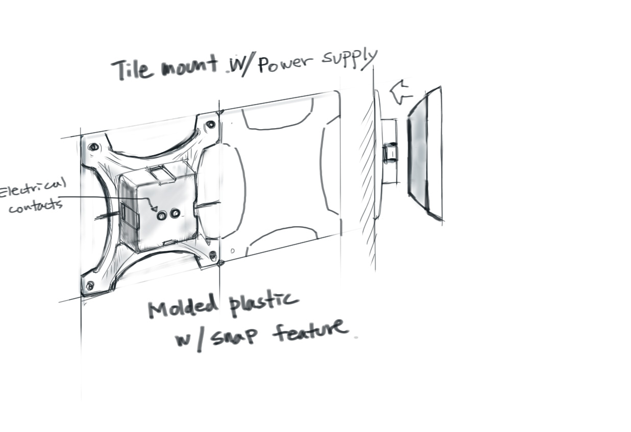 At the time, mid-power white LEDs, driven by the LCD backlighting industry, were just emerging and promised far lower costs than high power white LEDs (which proved utterly true over time). They would allow for grids of small point sources to be used to create smooth, uniform backlighting in shallow depths, a totally new opportunity back in 2009. So taking my previous experience at Color Kinetics, I realized that a white backlight module would be an incredible new product category for luminous architectural features. I conceived of the tiles as basically like Color Kinetics eW Cove Powercore sticks – unitized with cable connectors between tiles for a variety of creative configurations. The killer idea was developing a 45-degree luminous corner out of an injection-molded diffuser: That allowed for seamless tiling with no gaps or shadows with flat, convex or concave curved walls. And amazingly, it allowed for making 90-degree outer corners that also maintained luminosity.