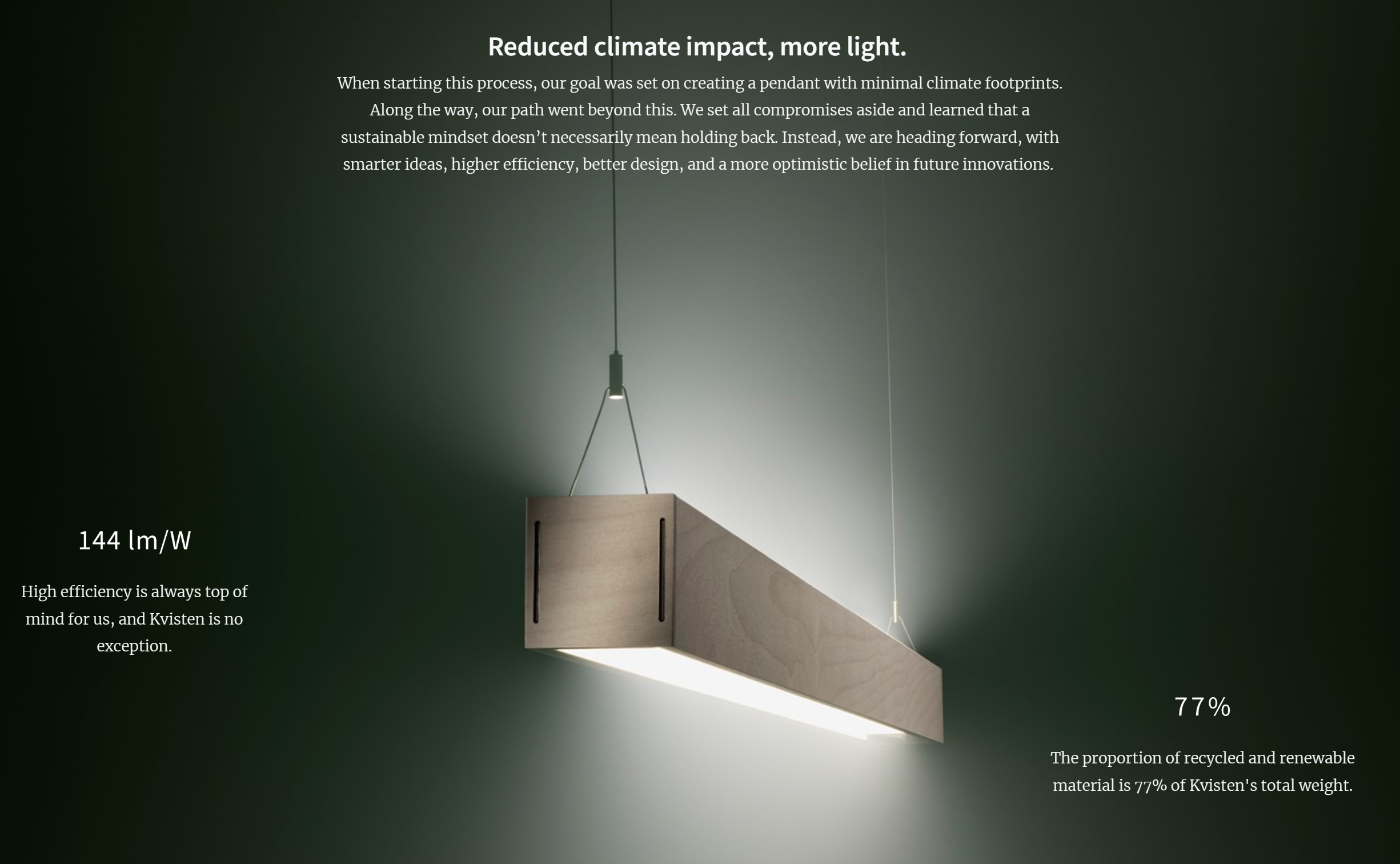 Kvisten is made of birch plywood and espouses many of the core principles I put forth over the past decade: Use the high efficiencies coming with LEDs to eliminate needless high carbon, toxic materials; design for easy disassembly and recycling; capitalize on the beauty of natural materials.