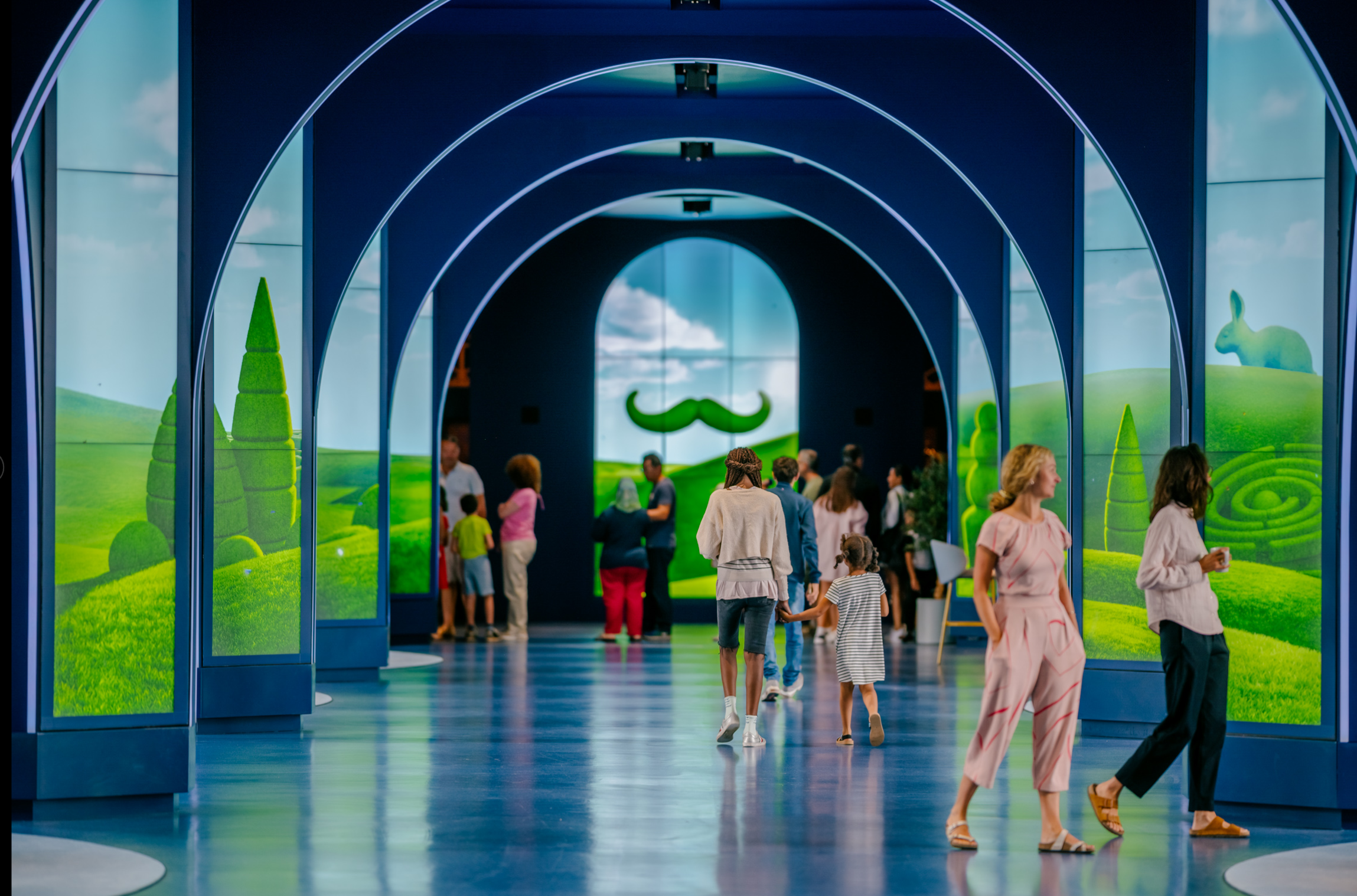 Via Sixteen:Nine: Experience design firm Moment Factory has completed a very interesting hotel lobby project at the Grand Magic Hotel near Disneyland Paris that extensively uses digital signage, digital projection and digital lighting as primary architectural elements. The overall effect is stunning and showcases the importance of digital media content to determine the experience of a physical place, especially as it transforms over time.