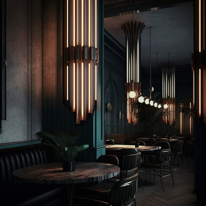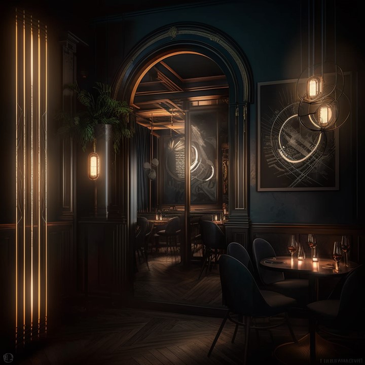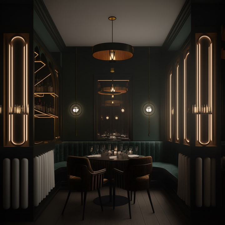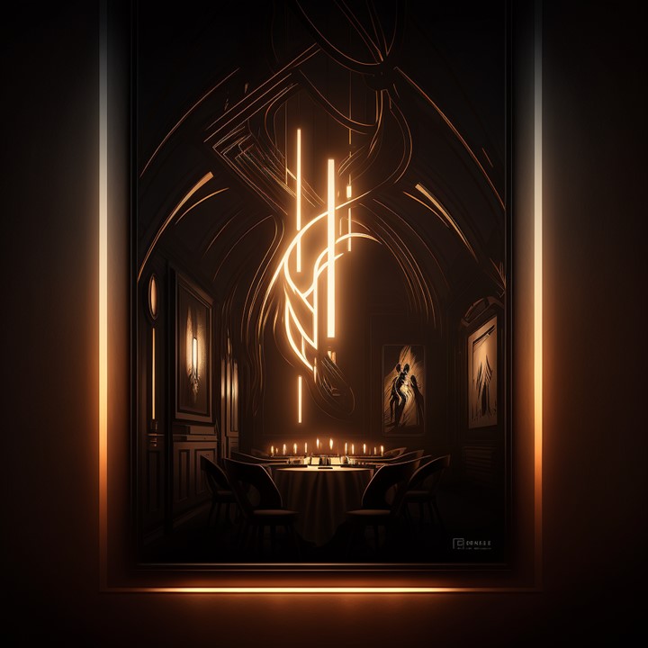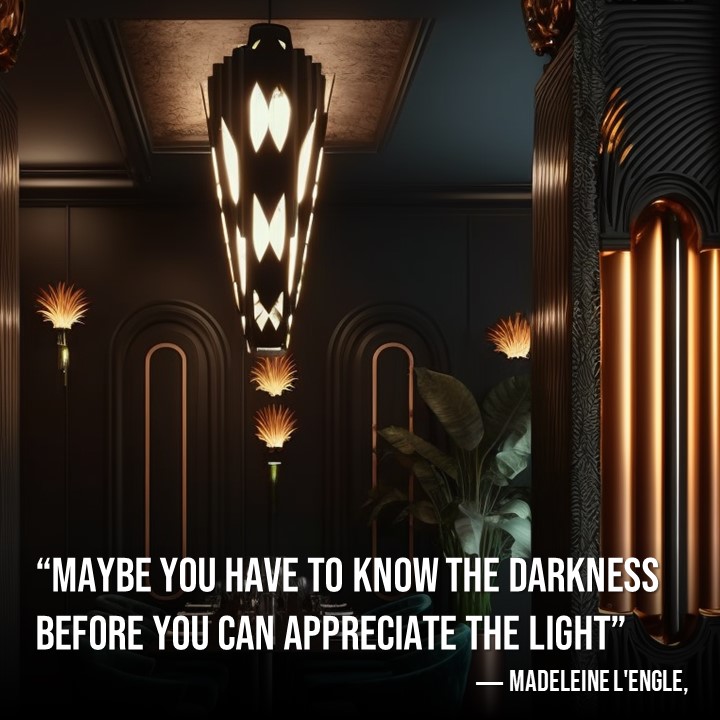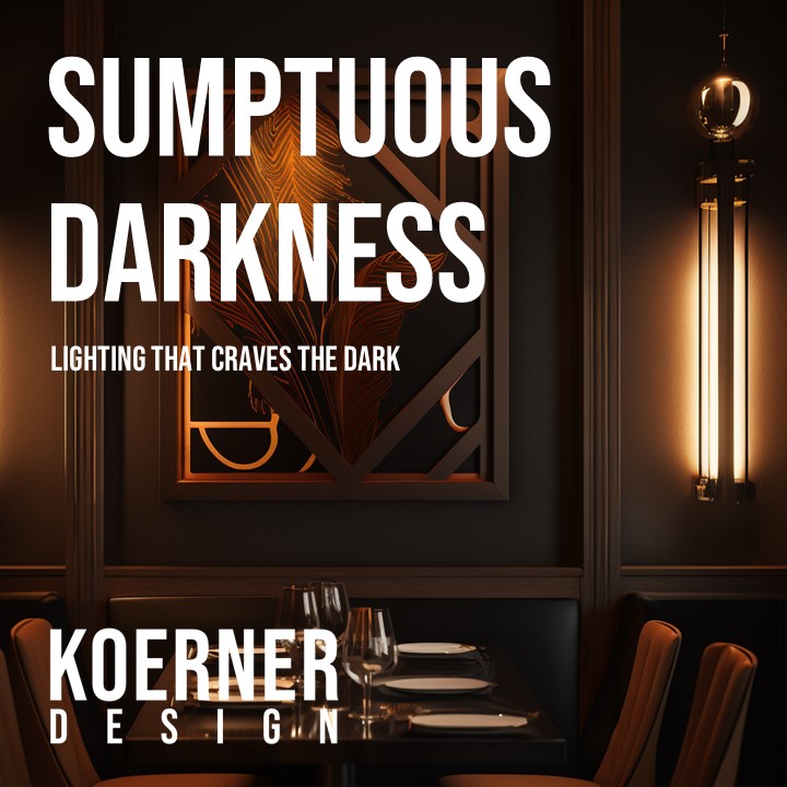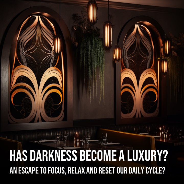 These are early stage “mood board” AI renderings exploring darkness as a luxurious, sumptuous experience – and what new forms of decorative lighting concepts may stem from those designs.