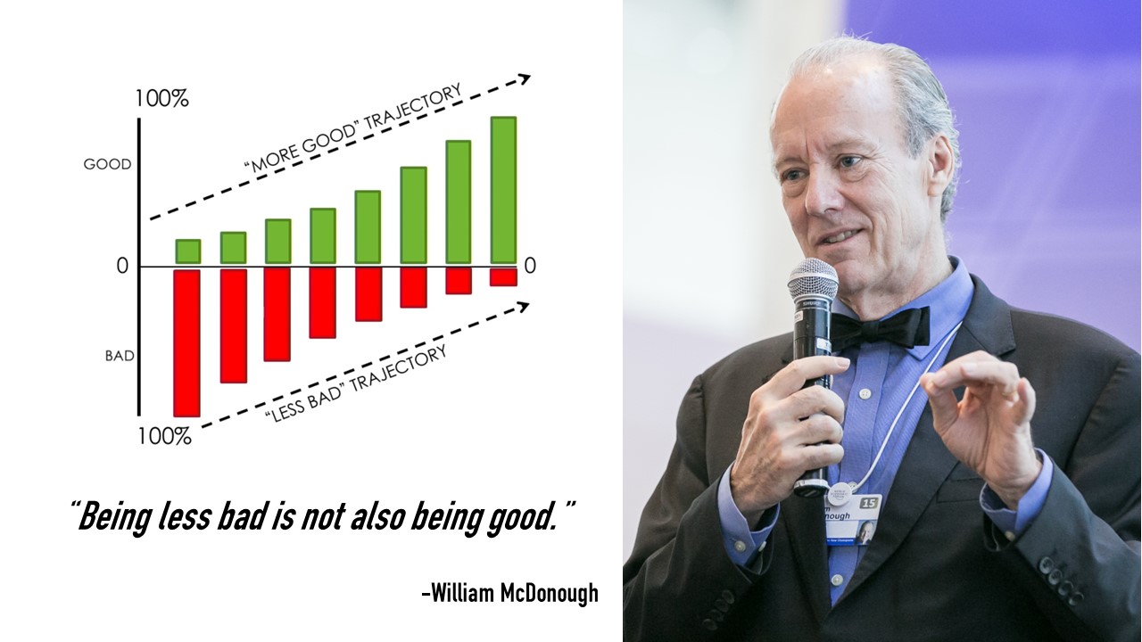 First, some background: I attended the School of Architecture at the University of Virginia when architect William McDonough was the Dean. McDonough is one of the worlds foremost advocates in sustainable design and manufacturing, most notably having authored the “cradle to cradle” development standard. So when I saw McDonough was speaking here in the Netherlands, I reintroduced myself to him and asked if somehow our innovation group could work with him on a sustainable product design. He immediately responded (paraphrasing) “…well, I’m doing a whole office park development in Hoofdorp, let’s do something there!“