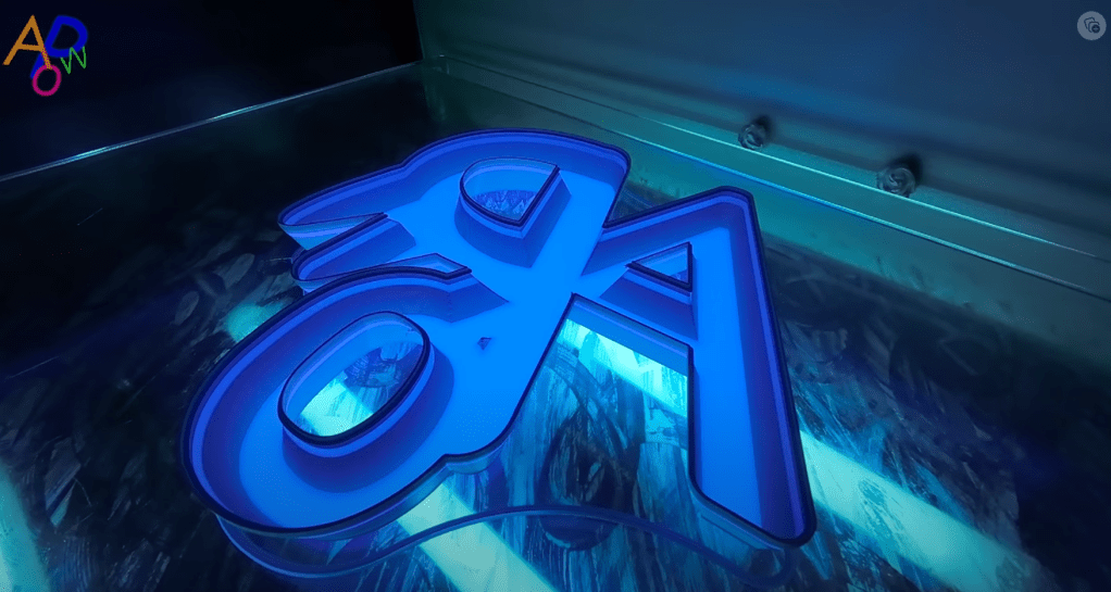 I came across this video showing a production process combining 3D printing, UV-cured resin and laser-cut back plate for building illuminated channel letters. Using custom-sized 3D FDM printers that look to have a print volume of roughly 600mm x 600mm x 75mm.