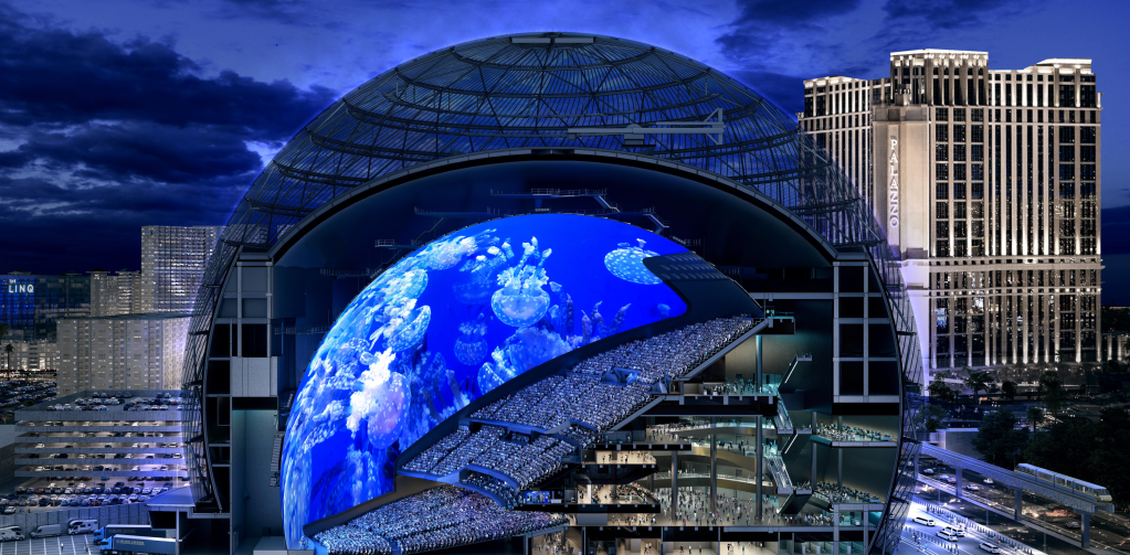 If you’re not familiar with the Sphere megaproject, here’s a fantastic section to understand the enormous scale of the both the outer and inner LED domes:
