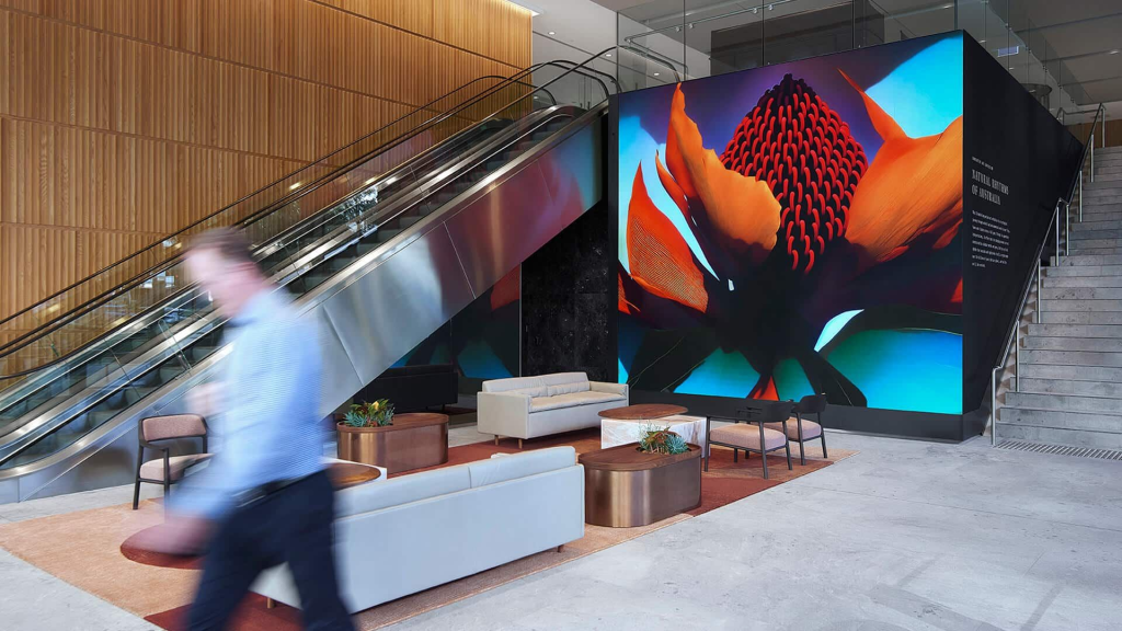 ‘Natural Rhythms of Australia’ was commissioned for the redevelopment of Darling Quarter North and is presented on a state-of-the-art, 47 sqm ultra high-definition LED array, visible from multiple viewpoints around the precinct.