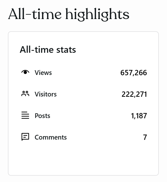 For the 10th anniversary of Lucept, I recounted how Lucept was going to be my LED lighting startup. Setting up a blog was just the du-jour marketing approach. The startup never happened but the blog survived. So what does 15 years of slow-but-steady niche blogging get you for stats? Here are the cumulative numbers:
