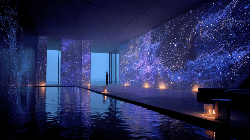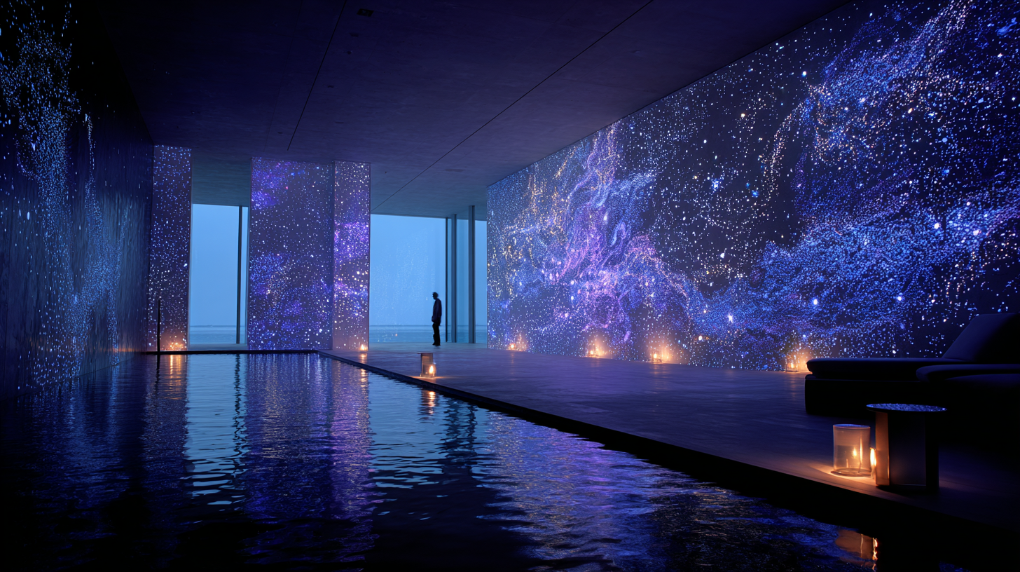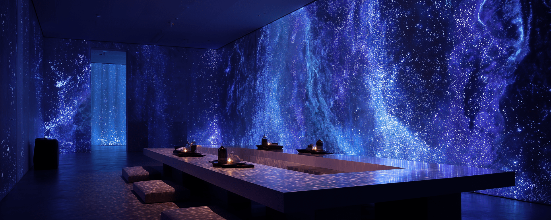 How it applies: Create emotionally resonant atmospheres rather than acute visual bombardment. Combine lighting, sound, scent, and digital visuals to evoke states like nostalgia, longing, or calm. For example, a retail space that uses ambient music and hazy sky gradients to recreate the memory of a summer evening. As vision systems progress, even anonymous systems will be able to estimate guest moods and live-generated content can literally resonate with guest’s emotional wavelengths.