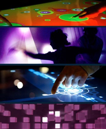 Hard Rock Cafe in Las Vegas recently unveiled a massive 18′ wide by 4′ tall rear-projection, multi-touch, multi-user interactive wall for showcasing its rock’n’roll memorabilia collection. Developed by Obscura Digital, a San Fransisco-based “digital design and technology marketing agency,” the wall uses three 1920 pixel HD projectors along with some serious graphics processing power to render a huge number of images and video clips with live multi-touch manipulation.