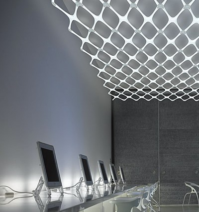Via Dezeen: Ross Lovegrove exhibits sculptural lights in Barrisol pavilion at Biennale Interieur 2014. The miracle of LED tape lighting, continued, I’m sure: I’m guessing this is simply an extrusion, filled in LED tape with mid-power LEDs tightly spaced together. Stretch some … Continue reading ross lovegrove + barrisol = groovy